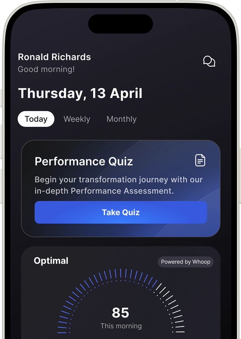 Your personal performance coach has full visibility into your real-time health data, from HRV and sleep to recovery and strain. Through voice notes and chat, they'll guide you with custom strategies, accountability, and continuous feedback.